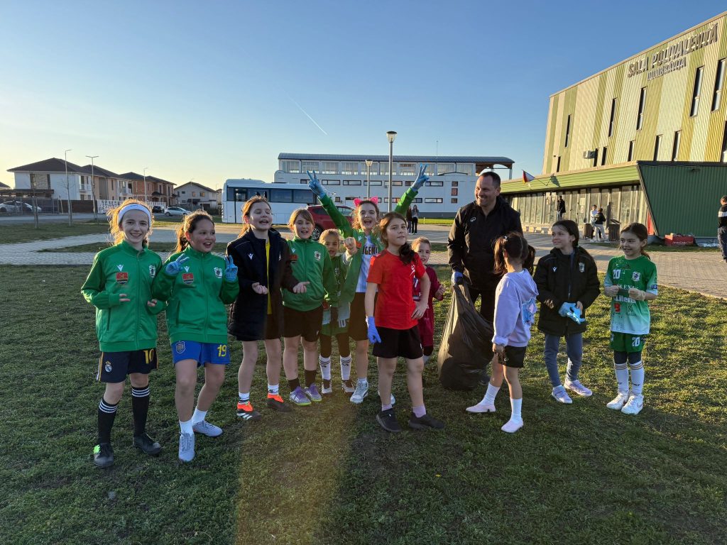 Înarmate cu mănuși și saci menajeri, tinerele fotbaliste au adunat toate deșeurile din zonă, contribuind la curățarea și înfrumusețarea unui spațiu frecventat zilnic de locuitorii comunei.