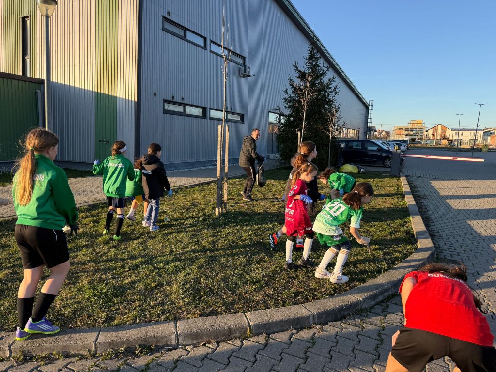 Junioarele CSC Dumbrăvița, pregătite de antrenorul Gelu Haidău, au desfășurat recent o acțiune de ecologizare în zona Sălii Polivalente.